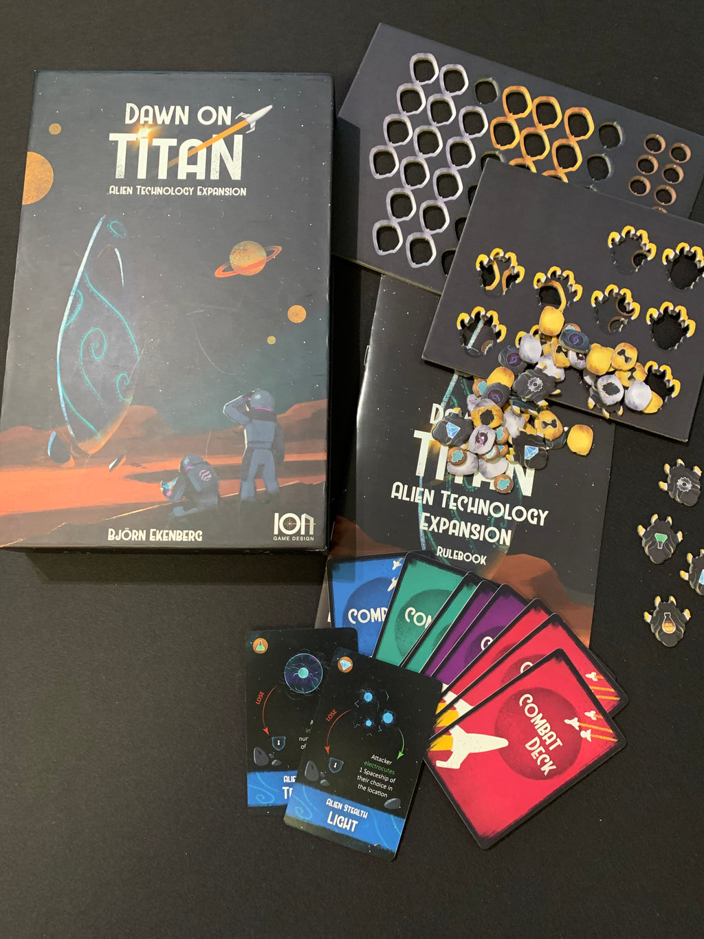 Dawn on Titan Alien Expansion. You need the core game of Dawn on Titan to make use of this expansion.